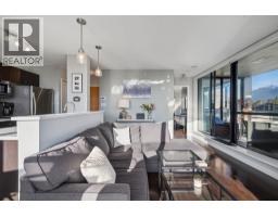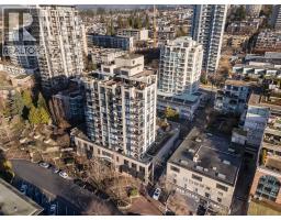 Welcome to The Q at 1st and Lonsdale. This beautifully maintained corner home offers a thoughtful layout, floor-to-ceiling windows for excellent natural light, and captivating views of Grouse Mountain and the Inner Harbour. The open living and dining area is anchored by a gas fireplace and flows seamlessly to a generous covered balcony on the quiet side of the building, ideal for year-round enjoyment and entertaining. The kitchen is well appointed with gas range, ample storage, and stainless steel appliances. Large bedroom comfortably fits a king-sized bed, and the spa-inspired bathroom is fully updated. In-suite laundry, one parking stall, and one storage locker complete the package. Set in one of Lower Lonsdale´s most walkable and vibrant locations, you are steps to the Seabus, the Quay, cafés, restaurants, fitness studios, and the waterfront. Pet-friendly, proactive strata with a strong sense of community, this is an exceptional opportunity to secure a quiet home on North Vancouver´s most desirable street. (id:45820)