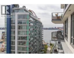 OCEAN VIEWS AT THE SHIPYARDS! Welcome to Atrium At The Pier, and experience waterfront living in the heart of Lower Lonsdale. This thoughtfully RENOVATED home offers stunning water, downtown and mountain views. Updates include red oak engineered hardwood floors, new paint, new kitchen sink, modern lighting, and remote-controlled floor to ceiling UV/blackout roller shades. Stay comfortable year-round with A/C, and unwind on your covered 104 sq.ft. balcony which offers plenty of morning sun. Access to RESORT-STYLE AMENITIES including an indoor pool, hot tub, sauna/steam, and gym. Steps to the SeaBus, Pier, Spirit Trail, restaurants and more. 1 parking stall + 1 storage locker included. Currently tenanted month-to-month. Don't miss your chance to see it! OPEN HOUSE: Saturday Feb 21st 12:00-2:00pm, and Sunday Feb 22nd 2:00-4:00pm. (id:45820)
