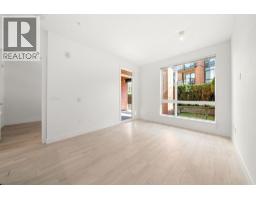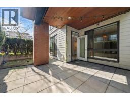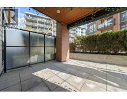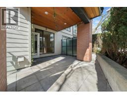 Patio lover´s dream! East-facing ground-floor 1 bed, 1 bath and den at The Shore by Adera. Bright modern kitchen with white cabinets, quartz counters, stainless steel appliances and a large bar for seating. The bedroom is a generous size with its own ensuite. The living area opens to a private oversized patio perfect for entertaining, gardening or relaxing. BONUS 49 sqft Private Storage locker room directly beside the unit (approx. 3'6 x 14'), ideal for bikes, gear and storage. Excellent central location near shopping, schools, transit, the Spirit Trail and only a 15-minute walk to Lonsdale Quay and Mosquito Creek. Includes 1 parking. Building amenities include gym, yoga studio, playground, amenity room and bike storage. Pet and rental friendly building in a vibrant North Shore community. (id:45820)