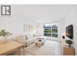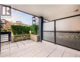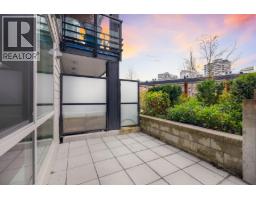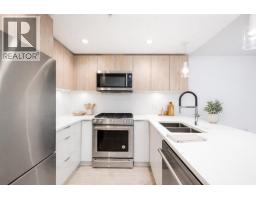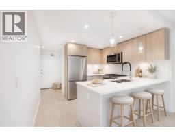 896 sqft TOTAL LIVING. This stunning 1 Bed + Den features a rare 277 sq. ft. wraparound patio with private exterior access and BBQ hookup, perfect for indoor-outdoor entertaining. Bright open interiors offer wide-plank flooring, radiant in-floor heating, and a gourmet kitchen with quartz countertops. Built by Adera with Quiet HomeTM technology for enhanced soundproofing and sustainability. Includes 1 parking, 1 storage locker, and in-suite laundry. Enjoy the West Coast Club amenities: party room, gym, dog wash, bike room, and courtyard. Steps to Whole Foods, Lagree West, Buddha-Full, and walk directly out of your home to the off-leash dog park. 94 Walk Score. Move-in ready. OPEN HOUSE Sat Feb 21, 11-12 pm & Sun Feb 22, 2-4 pm (id:45820)