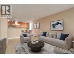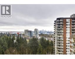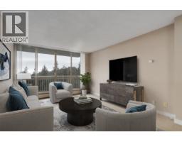 Outstanding opportunity to acquire a higher floor S/W corner two bedroom in Woodcroft's Lillooet building. This suite has a south facing window and main windows face west for maximum sunlight and views. Great views to city skyline and English Bay. This unit was extensively renovated some years ago for a family member and shows well above average! Fully renovated kitchen with a wall partially opened and cabinets are extended along the dining room wall. Both the main and ensuite bath have near total updates. Building has many infrastructure updates including plumbing replacement, elevator rebuilding, roof replacement and common area renovations. Maximum 4 residents are allowed. Fast possession for rental or move in. 24/7 manned security. 5 minute walk to Lions Gate Village with a Community Centre, shops and Services, Transit and a planned Grocery store. Park Royal is a 10 minute walk along the Capilano River trail. Some interior photos have been digitally staged with furnishings. (id:45820)