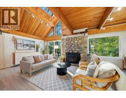 Perched among the trees in the heart of Deep Cove sits one of the most unique and special homes you will ever see. From the moment you walk through the door, you're welcomed with soaring vaulted ceilings, beautiful cedar posts and beams, and an abundance of natural light through skylights and dramatic floor-to-ceiling windows. The renovated kitchen is the heart of the home and opens onto a huge private patio-an incredible extension of the living space and the perfect setting for summer dinners parties. Designed for both entertaining and everyday comfort, this home has an effortlessly relaxed, welcoming feel. The living room features a cozy gas fireplace, perfect for curling up with a book, while the peaceful primary suite overlooks the serene surroundings. A quiet family room is ideal for movie nights, and the second and third bedrooms offer great space for kids. Step outside and experience the magic of Deep Cove, with Strathcona Park and forest trails just moments away. (id:45820)