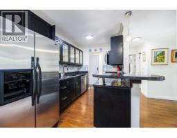 Welcome home to this fabulous, large 1BR suite on the quiet, sunny south side of the building. Step into the bright, inviting space featuring a beautifully updated kitchen with granite counters, tile backsplash, rich cabinetry & stainless steel appliances, plus an updated bathroom. The open living area is warm & welcoming, accented by crown mouldings & California shutters. The oversized private deck is perfect for morning coffee or evening gatherings, complete with bonus private storage area. This well-run, well-maintained building offers shared laundry on every floor and comes with 1 secure parking. All this in the heart of Central Lonsdale-walk to Whole Foods, cafés, shops, library, parks & transit. A special home in an unbeatable location! (id:45820)
