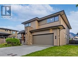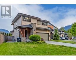 Welcome to this beautiful 7 year young home in one of the newest family oriented neighbourhoods in Squamish with amazing Mountain views. This 2 storey House has 3 bedrooms with a family room and 2 full bathrooms including a 5 piece spa like ensuite in the primary bedroom upstairs, and one bedroom, a cozy living room with a gas fireplace, a gourmet kitchen with S/S appliances, and an off kitchen dining room on the main floor that opens to a covered outdoor deck with ceiling heaters in the fully fenced backyard which backs into a green park. Some upgrades include A/C, heated floor in Ensuite bathroom, Central Vacuum, etc.. Nearby Squamish's best trails for hiking and also bike riding. 50 minutes to Vancouver and 40 minutes to Whistler. (id:45820)