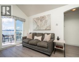 $353.91 MonthlyTop floor, 1 bed, 1 bath, OCEAN VIEW unit in sought-after Lower Lonsdale, close to breweries, walking trails, shops and restaurants. This light-filled home features vaulted ceilings in the living room, anchored by a cozy gas fireplace (included in strata) and sliding doors that lead to your own private patio with panoramic ocean and city views. Enjoy the same beautiful scenery from the primary bedroom, which leads to a walk-in closet. With updated laminate flooring throughout, in-suite laundry, parking and storage, this penthouse-style home in a quiet, prime location has it all. (id:45820)