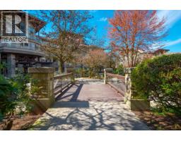 Welcome home to this immaculately maintained, resort-inspired 1-bed + den at the coveted Seasons South at Raven Woods. Enjoy peaceful inner courtyard, lagoon and fountain views from your oversized private deck. Inside, you'll love the thoughtful layout, granite kitchen, stainless steel appliances, engineered hardwood floors and cozy corner fireplace with a live-edge mantel. A king-sized primary suite, flexible den, dedicated office nook and resort amenities include gym, clubhouse and sauna complete the package. 1 parking, 1 storage, ample visitor parking and common EV chargers. Minutes to Deep Cove, Cates Park, skiing, golf and hiking trails. Easy to show. Book your appointment today. (id:45820)