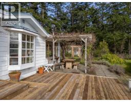 Perched above Sturdies Bay, this bright and airy 1-bedroom, 1-bath cottage is the perfect island cottage. With vaulted wood ceilings, built-in shelving, and a smart, efficient layout, it offers cozy charm on a sunny 0.29-acre lot. A spacious 551 square ft patio faces south toward Active Pass. The property also features mature fruit trees, sheds, and multiple outbuildings offering ample storage and creative potential. Just a short stroll to the government dock, ferry terminal, sandy beaches, shops, cafes, restaurants, and the South End's lively commercial strip. Located on Galiano Island-the gem of the Southern Gulf Islands and just one hour from Tsawwassen-this community is known for its 100 km of scenic trails, 69 beach accesses, and vibrant arts, music, and culinary scene. (id:45820)