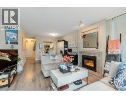 Spacious 723 square ft one bedroom in this south facing boutique concrete building, "Springhill Place", ideally located between Lonsdale & St. George. This bright, open-concept home features 9 ft ceilings. laminate and tile flooring throughout & plenty of natural light. The kitchen offers white cabinets, newer s/s appliances & a pass-through overlooking the dining/living area. Generous living rm w/large windows, cozy gas fireplace (incl. in maint fee) & city views. Step out to an entertaining-size covered patio. The primary bdrm easily fits a king bed & includes California Closets w/ensuite access. Comes w/secure parking on P1 & a huge storage locker. Unbeatable location, steps to shopping, restaurants, hospital & transit, plus an easy 30-min walk to the Seabus & Lonsdale Quay. OPEN HOUSE SAT MAR 28 11AM-1PM (id:45820)