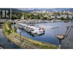 Cozy and comfy one and den floathome featuring spectacular roof top deck...see downtown Vancouver to the south and sunsets over lions gate bridge to the west. Unique curved design features windows all around the living room and den maximizing the sunlight streaming in. Stainless steel countertops keep the bathroom and kitchen looking sleek and modern. A custom ironwork railing highlights the top of the stairs to bedroom and den. Hydraulic pull down stairs access the roof top deck and it's amazing panoramic views of the city and ocean. This home also has its own waste treatment system. Outstanding location! Stores, restaurants, transportation, Lonsdale Quay and Seabus . (id:45820)